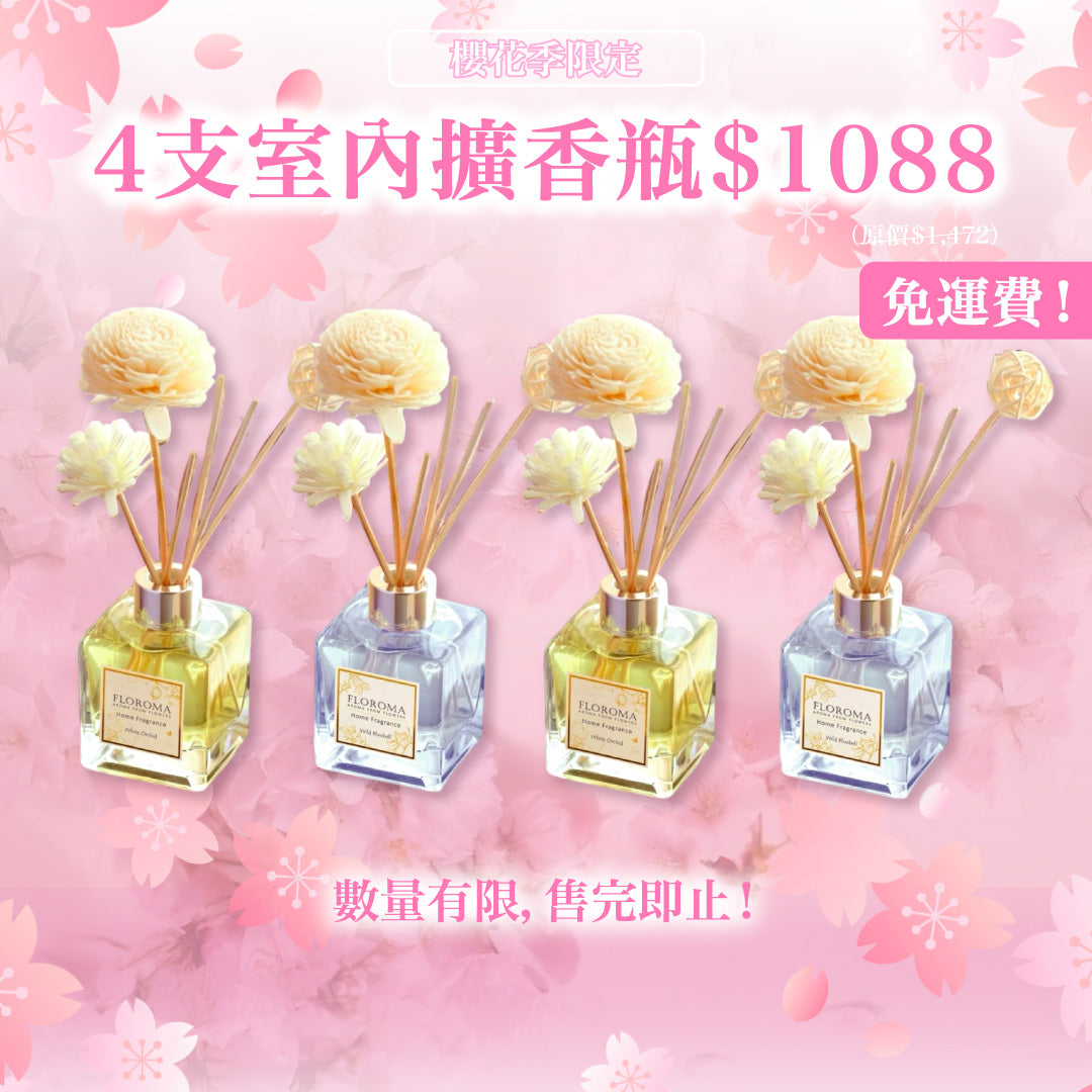 【櫻花季限定】大支裝室內擴香瓶150mL 4支套裝!免運費!