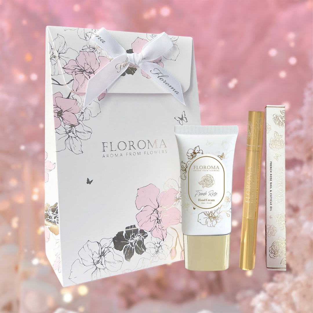 【送禮必備】法國玫瑰指尖呵護套裝(香氛護手霜+指甲護理油)